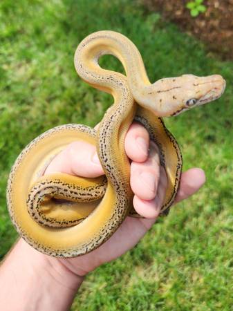 This retic is an absolutely stunning animal. She was produced from a gorgeous female Marble (Produced by NERD) and very vibrant male Caramel Lemonglow Motley (Produced by D-Rassic Park). She is...