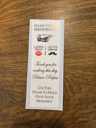 Photo booth magnetic frames, 2x6" for refrigerator or locker, with thank you note. " Thank you for making this day picture perfect."