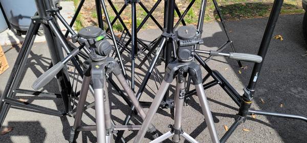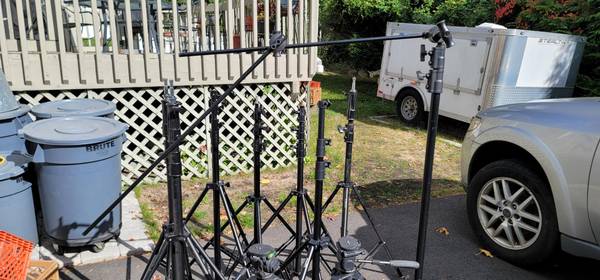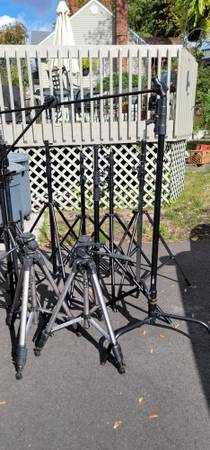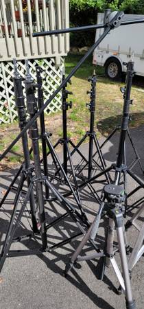 1x C-Stand (Impact brand) 9x light stands (3 are very heavy duty) 6x tripod wheels (new/unused) $300 cash takes it all.