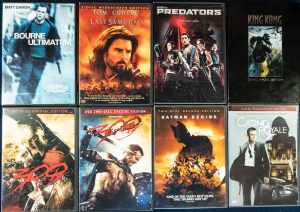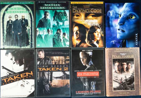 28 movies for sale. A mix of DVD and Blu-ray. All movies in like new condition, some have both DVD and Blu-ray in the case, and almost all have special features included on the disks. A few are special edition releases, i.e. Avatar.
