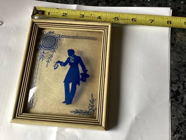 Convex glass reverse painting in wooden frame, call Dan no texts.