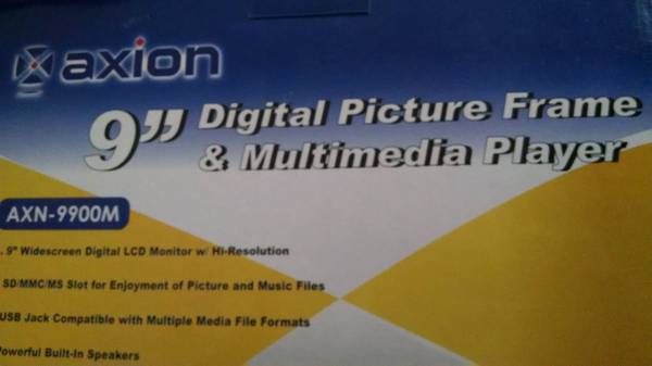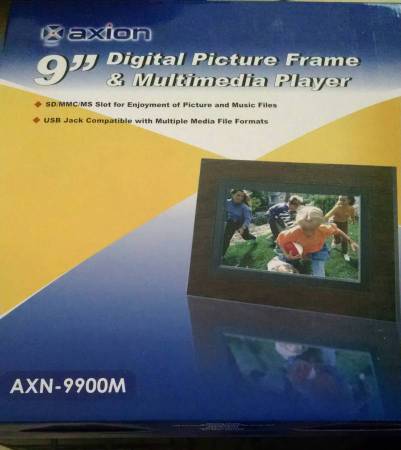 Axion 9" digital picture frame and multimedia player Brand new in box never used If interested please respond with a phone number Price is firm $30.00