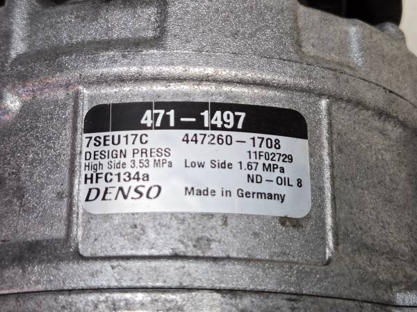 Fairly new Denso 471-1497 7SEU17C compressor. Was installed new end of summer, engine failed shortly after. Please check pictures and verify this fits your engine. Thanks, Dan