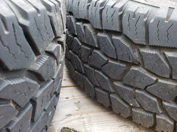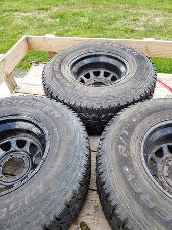 Steel 16" rims with Cooper Discover A/T3's. LT305/70R16 124/121R Load Range E. Ton of tread left. Rims are in great shape. It is 3 sets. 4th one was damaged when my truck was hit. I only prob got a year out of them. I had them on an '01 Yukon. Looking for the best offer.