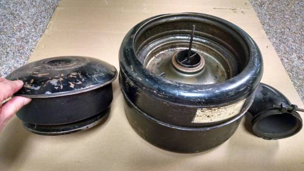 Oilbath air cleaner - whole assembly and interior components. For very late 40’s very early 50’s Ford Lincoln Mercery models. Small dent in rear but otherwise decent shape. Difficult to find this...