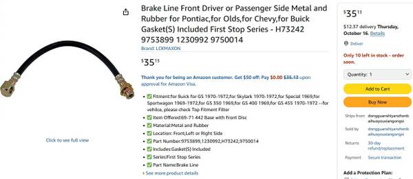 1969-1972 Olds - Pontiac - Chevy - Buick front disc brake hoses -...