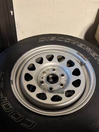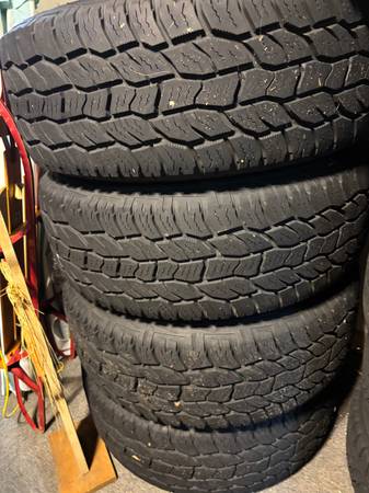 265/70/17 Cooper Discover all season tires. These were my winter tires for my 2023 Silverado. Mounted on 17” steel wheels. I have the lug nuts and center caps also. Used for two winters.