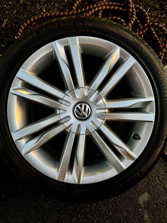 Selling a set of 4 original factory oem VW 17” Geneva wheels including a set of four new tires. Overall wheels are in great shape as pictured.