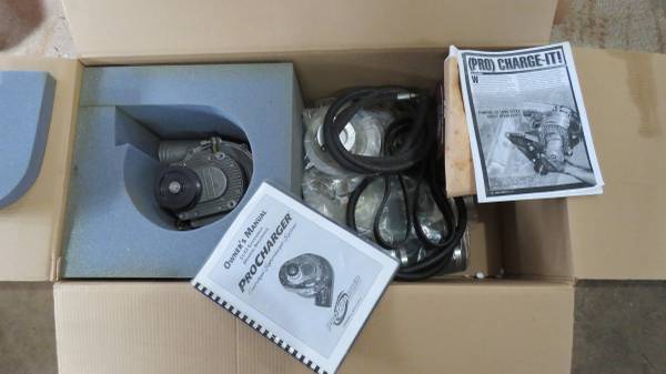 Complete Pro-Charger P600B (Billet Impeller) Kit for Carburated (Non EFI) Small block Chev. (I'm of the understanding that it may also fit/work on a BBC application but do your own research). It Comes complete and has never been installed. The supercharger head unit was removed from the box at one time to check fit for an entirely unique application before realizing it couldn't work as planned. It's been sitting in the box pretty much since purchased new. Also the installation manual that came with it has vanished.......i have no idea what happened to it. If i find it I'll include it, otherwise I would imagine you could easily find a copy on the Web. For you SBC guys installation should come naturally and be a breeze. Bolt on and enjoy the smell of burn'n rubber in the morning.