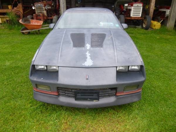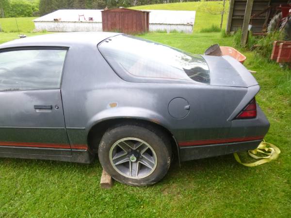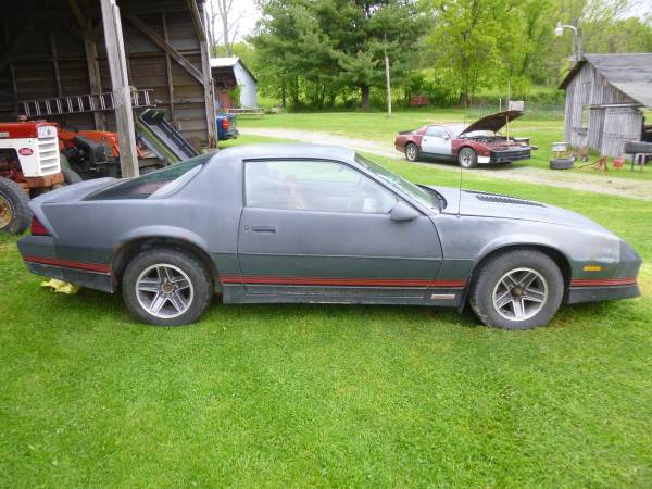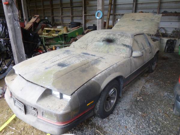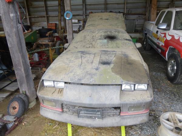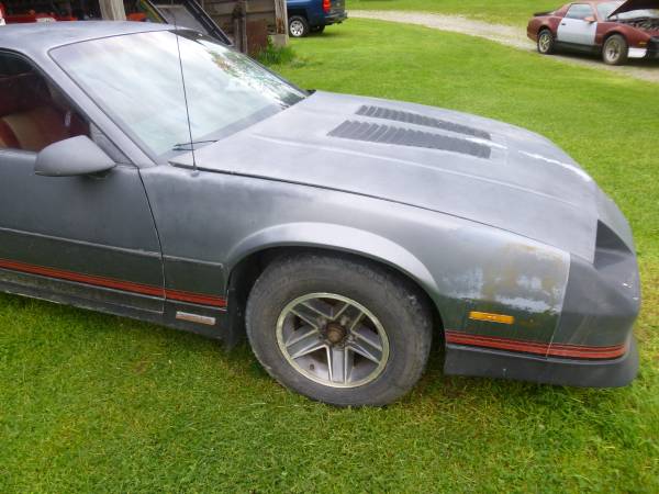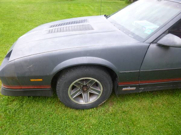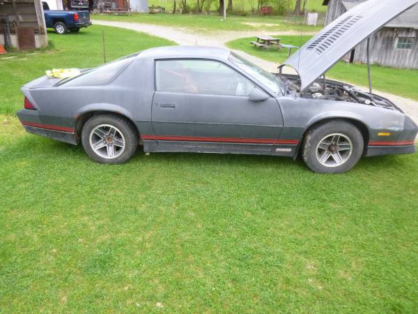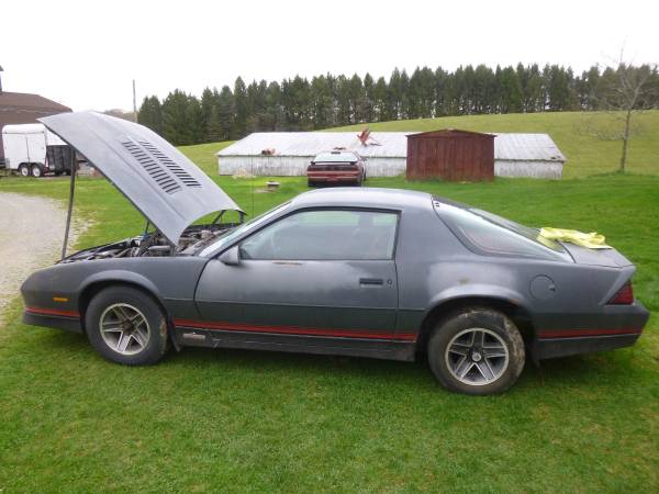 Selling an entire 1985 Camaro Z28 project car or use it for parts, selling whole car as is with clean signed original title. The uni-body appears to be in good condition, the floor pans are intact and not rusted like most are. This has been sitting in shed since 1998 when the original engine failed. It had belonged to my brother, and he bought a good used 1991 350 tuned port engine along with the wiring harness and the ECM from the same car. back in 2003, the engine was put in place. but he lost interest in finishing the conversion. The engine had oil put in each cylinder. Mice had found their way inside the car through the left rear wheel well (rusted) so it smells bad like mice. The engine still turns over ok. Windshield is cracked, see last picture.