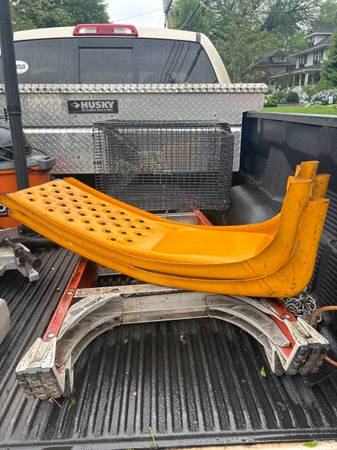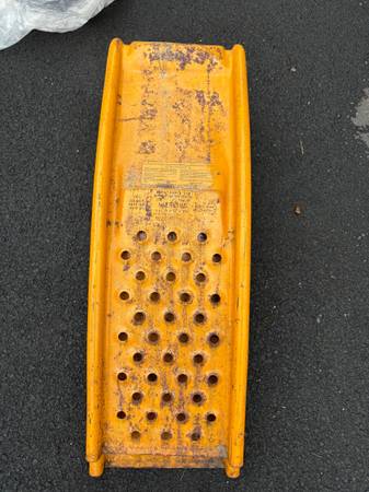 A pair of yellow steel car ramps.