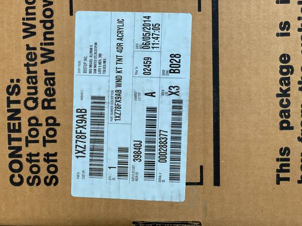 Jeep Wrangler JK 4dr Premium 4x4 Soft Top Windows Tinted CHRYSLER 1XZ78FX9AB New in Box