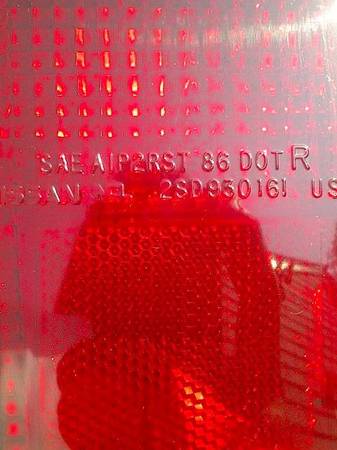 Right side tail light 1986-97 2SD930161 SAE A1P2RST 86 DOT R. Photo is of actual light. D21, E, SE, XE, 4x4, hardbody standard and king, Crew cab, Tipico, Lujo, base standard cab