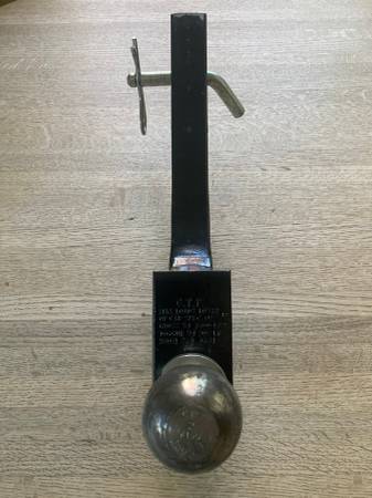 C.T.P. TRAILER HITCH /BALL MOUNT FITS 1 1/4" HITCH RECEIVER RISE = 3" LENGTH = 9 3/4" (center of hitch pin to center of ball) MAX TRAILER WEIGHT = 3500 LB MAX TONGUE WEIGHT = 350 COMES WITH 2" BALL...
