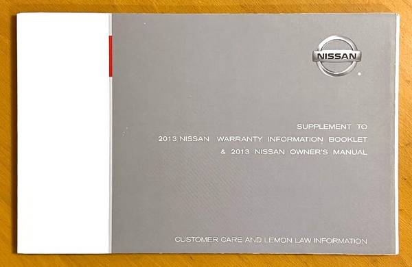 • Supplement to 2013 Nissan Warranty Information Booklet & 2013 Nissan Owner’s Manual