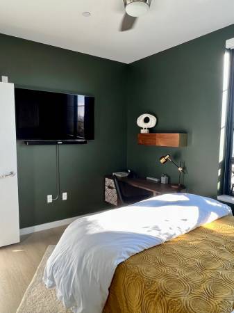 The private bedroom and private bathroom are available as early as December 16th, features a queen-sized Dream Cloud mattress for lounging and great sleep. You will find a generous sized desk for a work-from-home set-up or any other of your needs. Additionally, there is a 55" tv with apple tv and access to many apps including, Hulu, Netflix, Max, Peacock, Showtime and more...