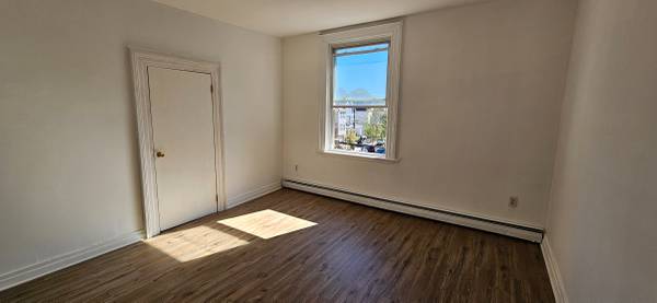 Private room featuring a large window, located on the second floor with abundant natural sunlight and a pleasant corner view. The room offers high ceilings, a built-in closet, and has been fully renovated with new hardwood flooring.
