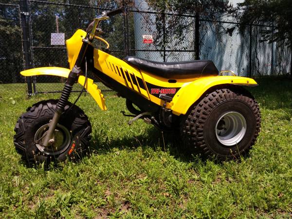 82 Yamaha tri moto 175 2-stroke 5-speed semi-auto newer top end and crank seals new fuel pump new tires new seat cover new LED lights everything works fires right up has rare racing exhaust tops out about 60 mph runs strong hits powerband hard lifts every gear ignore quad tri trike ATV ATC wheeler Yamaha Honda Suzuki Kawasaki ytm tecate 250r