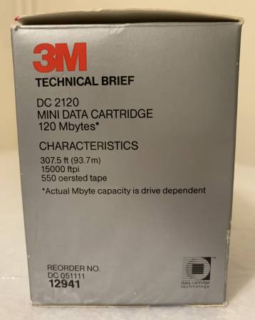 BOX OF 5 - 3M DC 2120 Mini Data Tape Cartridge 120 MB ($30) --------------------------------------------------------------------------------- *** NEW OLD STOCK / FACTORY SEALED ***