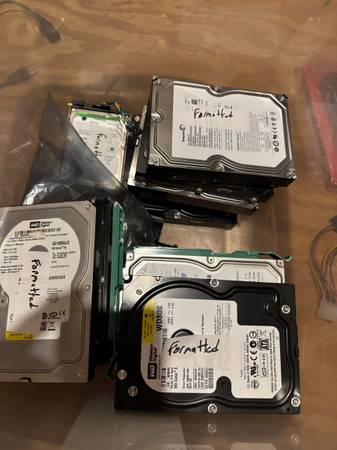Computer Parts (6 Desktop computers) Laptop, 4 Monitors, Printer, Network boards. Cables (Network, Power Plugs, COAX, HDMI, VGA, DMI, Telephone) laptop power cords. Hard Drives, Power Surge protection. Flash Memory reader. Much more.
