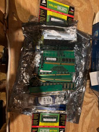 Computer Parts (6 Desktop computers) Laptop, 4 Monitors, Printer, Network boards. Cables (Network, Power Plugs, COAX, HDMI, VGA, DMI, Telephone) laptop power cords. Hard Drives, Power Surge protection. Flash Memory reader. Much more.
