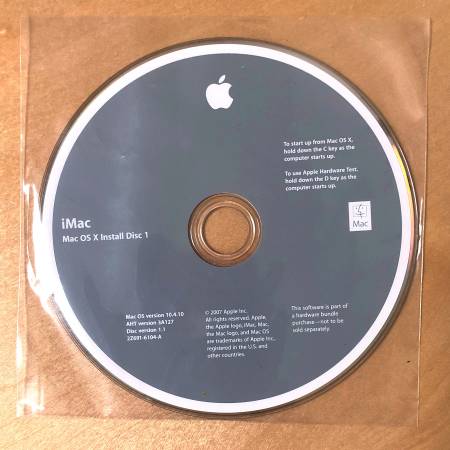 These are Apple iMac OS X Tiger Install discs. They came with an Apple iMac I bought several years ago. I don't think I ever used them. Mac OS X Install Disc 1 Mac OS Version 10.4.10 AHT version...
