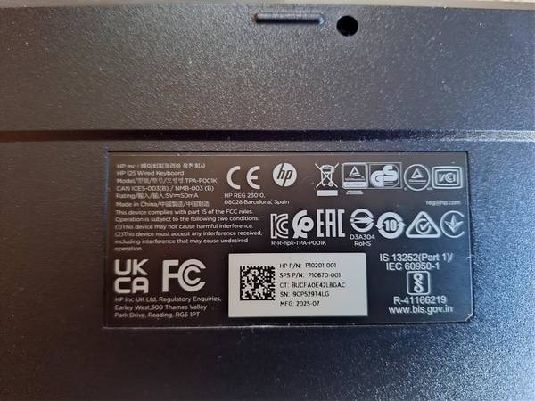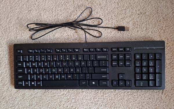 Hewlett Packard wired computer keyboard model TPA-P001K with USB connection. New in box, never used.