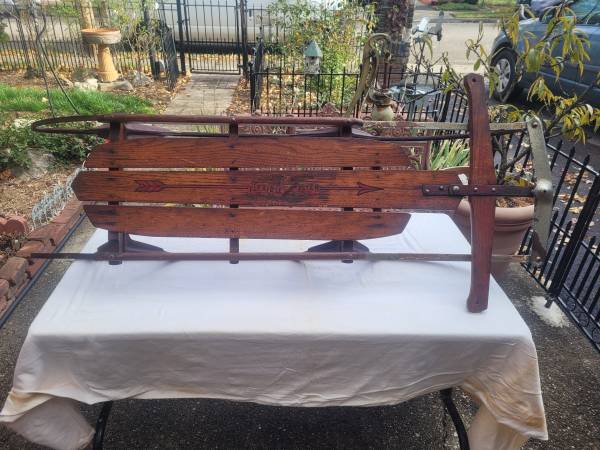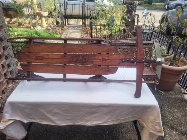 flexible flyer sled from around 1967 that is model 55j which is 55 inches long. nothing is broken or missing from sled and is in overall good condition. 40 dollars or best offer.