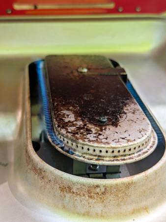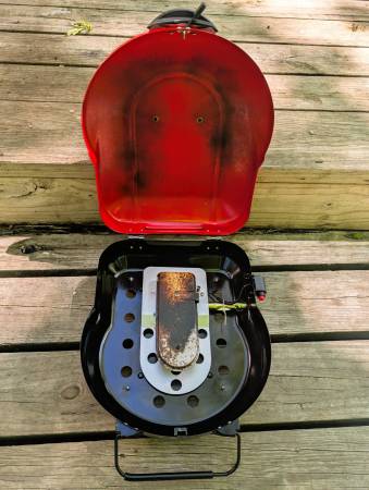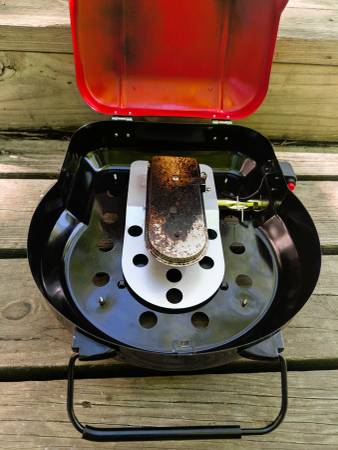 In good working condition. The push-button ignition can be unreliable at times, but the grill lights easily using a long match or lighter. Otherwise, functions as expected.