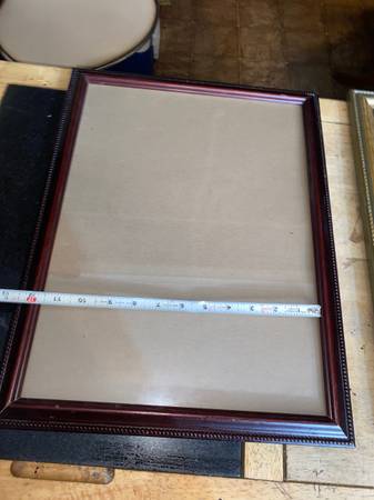 This is for 2 different color frames but hold same size picture or photos. Both have real glass fronts and each measure 11 3/4 by 15 3/4 size pictures inside them. One is gold color one is dark color wood. The frames are a little different in size the gold being bigger by maybe half N inch. You can see in photo with one on top of the other. Email or text with any questions.