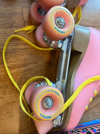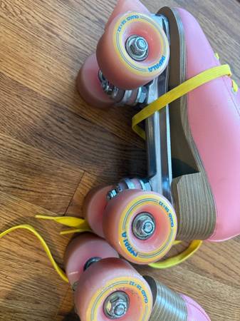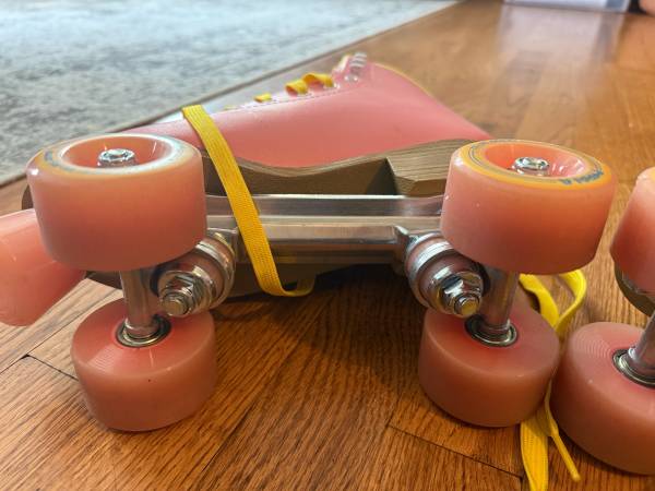 These are a great pair of quad skates. Barely used. Pink and yellow color (mostly pink).