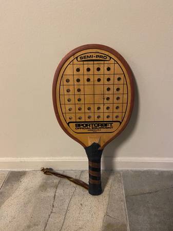 Semi pro Sportscraft official equipment, racket ball paddle easy front porch pickup