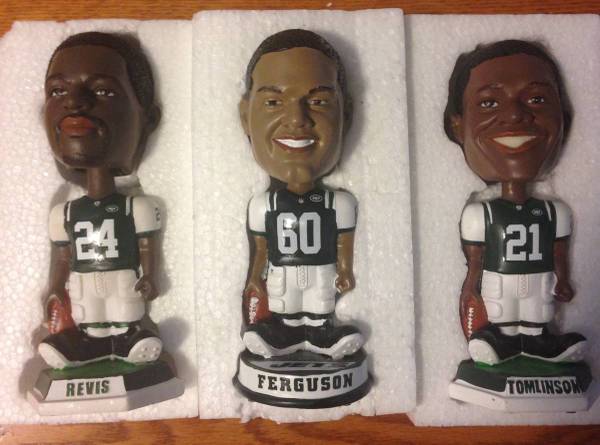 7 Jets football bobble head figures approximately 7 inches tall. New in boxes Official NFL sticker on boxes. 2@ LaDainian Tomlinson #21 1@ Darrelle Revis #24 3@ D'Brickashaw Montgomery Ferguson #60...