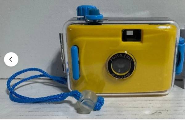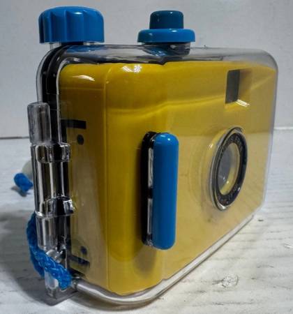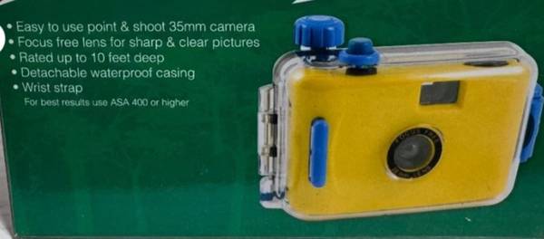 I have a few NEW IN PACKAGE and IN original boxes of yellow WATERPROOF CASING 35MM CAMERAS. THEY ARE $18.00 CASH EACH. Most of the ones I just got in have a blue waves design on the bottom front of the clear casing. No brand shows on the clear case or inner camera. All is brand new, never been removed for use.