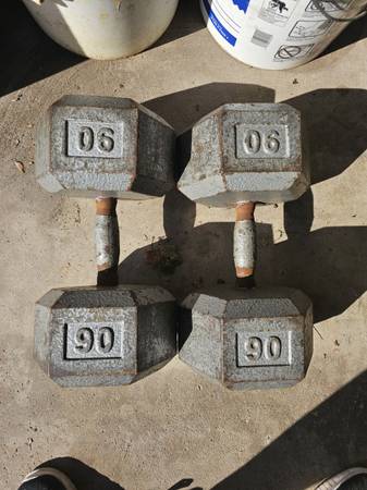 Pair 90lbs metal hex dumbbells - sporting goods - by owner - sale -...