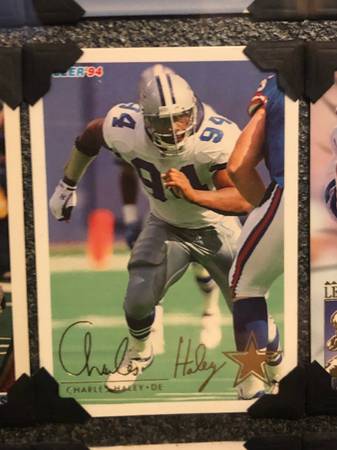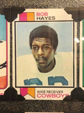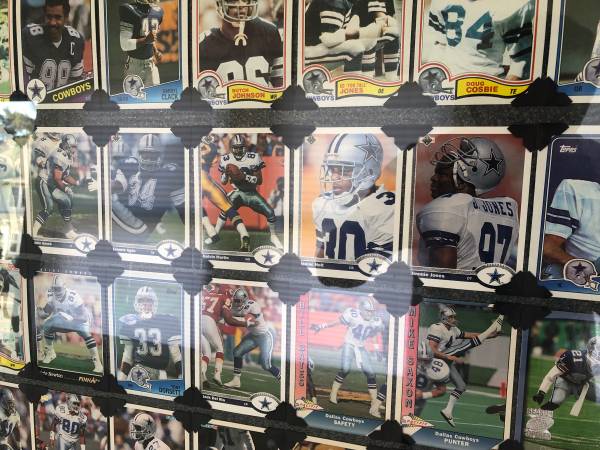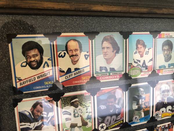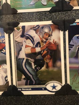 Cowboys fans Collection of Cowboys great players of the past Emmitt, Troy, Dorsey, Bob Hayes The legends Framed beautifully using photo corners so cards remain as they were Beautiful Christmas gift...