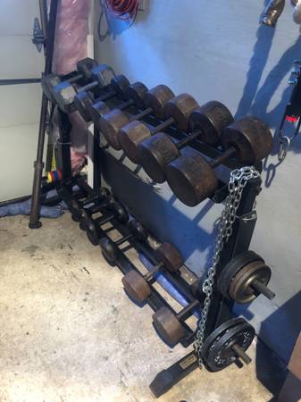 pairs of 60/50/40/30/25 yorks. not selling individual sets, all must go. have a pair of hex 45's/ 75 bucks. have body solid 2 tier rack, 90 bucks. take everything for 800. cash only, if ad is up its available. prices are firm. will not respond to is it still available questions