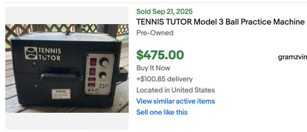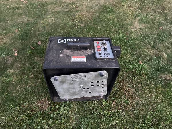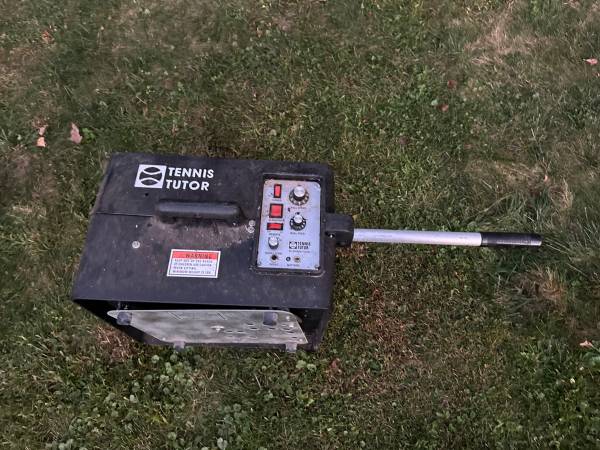 TENNIS TUTOR TENNIS BALL MACHINE BY SPORTS TUTOR PURCHASED AT AN ESTATE SALE BECAUSE I WANTED MY KIDS TO LEARN TENNIS BUT THEY RATHER BE ON THE IPAD. MACHINE IS COMPLETE, HAS BALLS INSIDE. MISSING...