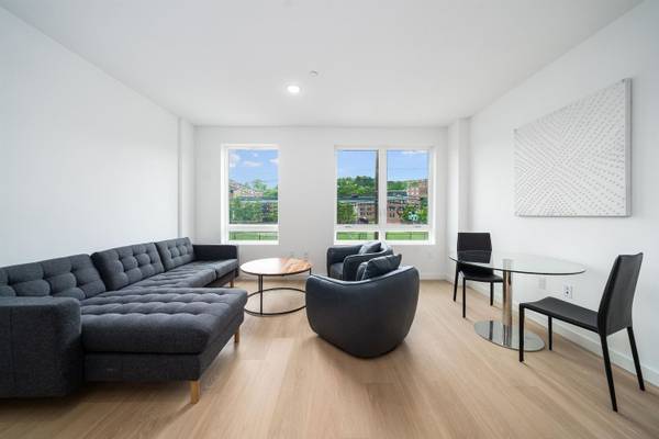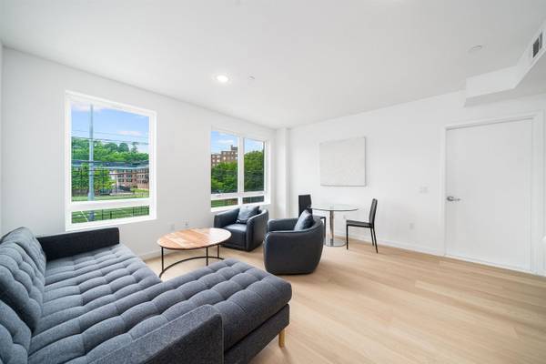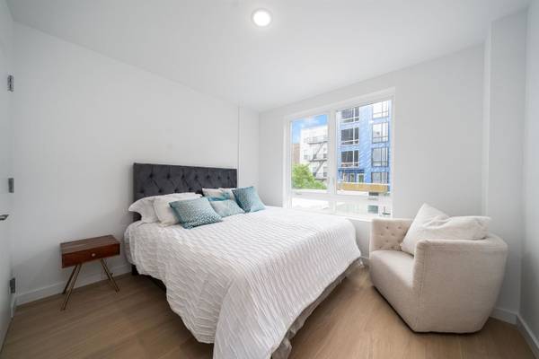 Be the first to live in New Construction, Elevator building with NYC Views! Spacious 2-bedroom, 2-bathroom apartment, boasting modern finishes and top-of-the-line appliances. Upon entry, be captivated by the gleaming hardwood floors that lead to the expansive open living space. Spacious kitchen with SS appliance package, center island with a sink. Main bedroom has lots of closets and en suite bathroom. Includes solid wide plank hardwood floors throughout, vibrant natural light, central A/C and in-unit oversize Samsung washer/dryer. Common backyard offers a serene retreat for year-round enjoyment. You are conveniently located by parks, shops and restaurants, parking as well as the 2nd St light rail station to make for an easy NYC commute.