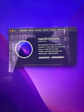 It’s at iMac (Retina 5K,27 Inch,Late 2015 ) 3.3 GHZ Quad Core Intel Core I5 32 GB Ram & 2.12 TB SSD in perfect condition not scratches and not dents is come with keyboard and mouse wireless and power cord everything original from Apple .