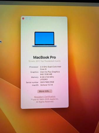 It’s at MacBook Pro 13 Inch 2017 2.3 GHZ Dual Core Intel Core I5 8 GB Ram & 512 GB SSD include adapter for charged battery is new installed ready with box include .