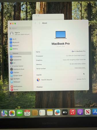It’s at MacBook Pro ( 15 Inch ,2018 ) 2.2 GHZ 6-Core Intel Core I7 16 GB Ram & 256 GB SSD