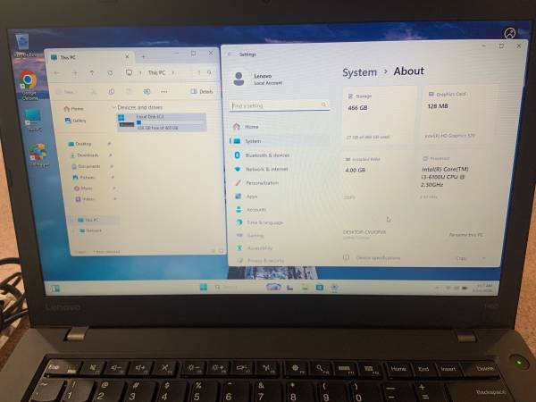 Lenovo ThinkPad T460 i3-6100U 2.3GHz 4GB Ram 500GB HD Win 11 With Charger