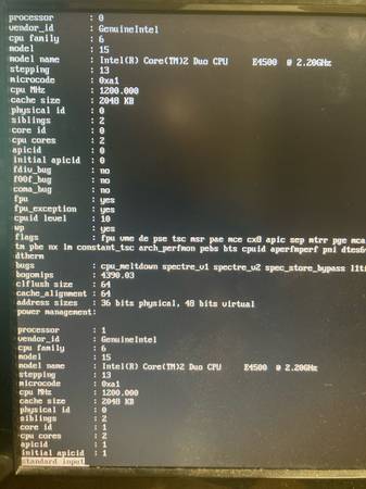 • CPU : Intel core2 duo E4500 2.20 ghz cpu