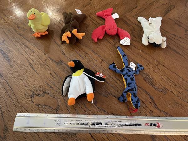 Lot of 6 Ty Beanie Babies/Teenie Beanie Babies - Pinchers, Waddle, Etc.