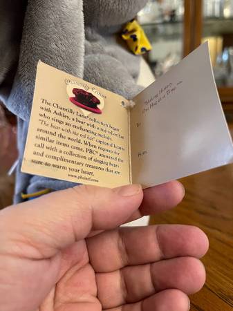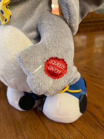 Condition: The battery compartment is inside. I assume it had a cover at one point, but I no longer have that, but it doesn’t seem to be an issue. There is a little paint chipping on the eyes, but otherwise, this is a great shape and is very cute.