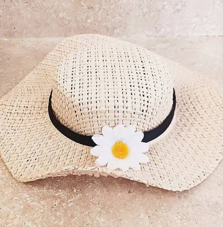 2) Straw hat with flower.