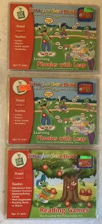 LOT OF 3 - Leapfrog Imagination Desk Book & Cartridge ($25) ------------------------------------------------------------------------------ - 1x - Reading Games (new in package / book &...