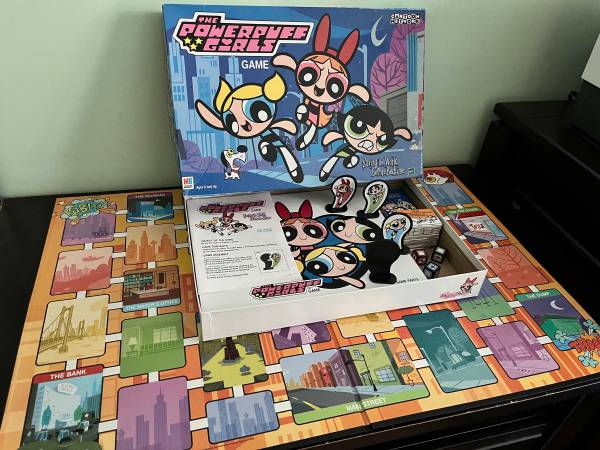 The Powerpuff Girls – Saving The World Before Bedtime 2000 Board Game Complete LIKE NEW Includes an extra blank playing piece. One corner of box tattered from storage.