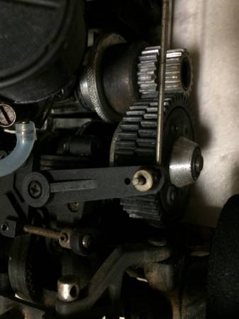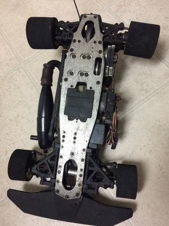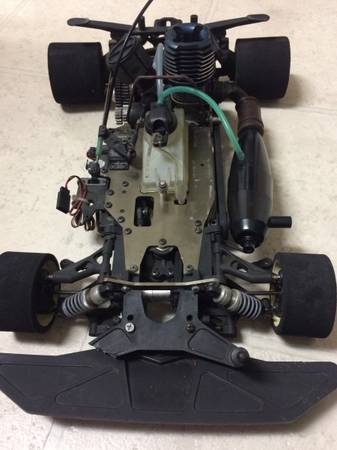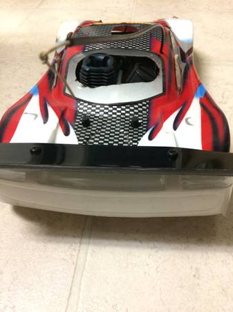 NOT SURE OF ENGINE SIZE BUT I THINK ITS .27 NITRO MOTOR, TURNS AND HAS COMPRESSION